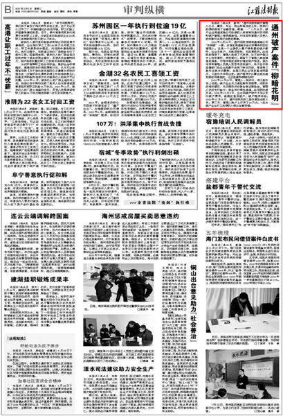江蘇法制報(bào)截圖 近日“南通瑞東會計(jì)師事務(wù)所”的名字,不斷出現(xiàn)在《新華網(wǎng)》《江蘇法制報(bào)》的報(bào)道之中。一個(gè)小會所名字出現(xiàn)到主流新聞媒體中,實(shí)屬罕見。這要從我所承辦的一起破產(chǎn)案件說起。 2020年8月24日,通州區(qū)人民法院受理南通某瑞公司“執(zhí)轉(zhuǎn)破”一案,并指定南通瑞東會計(jì)師事務(wù)所擔(dān)任管理人。這是一個(gè)典型的企業(yè)無資產(chǎn)、無賬冊資料、無經(jīng)營場所的三無企業(yè),債權(quán)人看不到任何受償希望的破產(chǎn)案件。 南通瑞東會計(jì)師事務(wù)所由多名專業(yè)人員組成的清算組,主任會計(jì)師吳林海親自帶隊(duì)。在承辦法院的指導(dǎo)下,管理人從不動產(chǎn)登記中心到車管所,再到銀行,四處奔波,全方位開展資產(chǎn)調(diào)查工作,可惜仍未能發(fā)現(xiàn)有價(jià)值的財(cái)產(chǎn)信息。管理人團(tuán)隊(duì)苦苦尋思突破口,仔細(xì)尋找蛛絲馬跡,終于在稅務(wù)局申報(bào)表和市場監(jiān)督部門的企業(yè)檔案中發(fā)現(xiàn)了有益線索。原來債務(wù)人公司季某等三股東出資為認(rèn)繳制,全國工商企業(yè)信息查詢網(wǎng)顯示,三股東均未實(shí)際出資。根據(jù)企業(yè)進(jìn)入破產(chǎn)程序股東認(rèn)繳出資加速到期的法律規(guī)定,讓這起案件柳暗花明! 2020年10月22日,管理人一紙?jiān)V狀,將三股東告上法庭在申請?jiān)V訟保全后,債務(wù)人企業(yè)無力提供訴訟保全保證保險(xiǎn)金的情況下管理人毅然決然決定有管理人機(jī)構(gòu)自己先行墊付,申請法院進(jìn)行了保全保全。終于,身兼企業(yè)法定代表人、股東的季某出面了,但未發(fā)現(xiàn)他有履行能力。另外兩名不參與公司經(jīng)營的股東湯某、尹某一臉“委屈”:“都是季某惹的禍,公司不破產(chǎn),再多的錢砸下去都是‘無底洞’。但是法律是公正的,2020年12月21日,通州區(qū)人民法院判決三股東必須承擔(dān)出資義務(wù)。管理人負(fù)責(zé)人告知被告“股東出資是你們應(yīng)當(dāng)履行的義務(wù),拿不到錢的債權(quán)人才是真正的受害者!逼扔诜傻耐Γ2020年12月22日,“想通了”的湯某、尹某向管理人賬戶打來了20萬元,最終, 7名打工人員全額拿回血汗錢! “破產(chǎn)管理人專業(yè)、敬業(yè)和高效的工作,使我們的債權(quán)得到了全額受償,好高興……”1月29日,破產(chǎn)企業(yè)南通某瑞公司的債權(quán)人楊某等向管理人南通瑞東會計(jì)師事務(wù)所寄來感謝信,對管理人的辛勤付出表示由衷的感謝。 為債權(quán)人楊某代理執(zhí)行的律師感嘆:“破產(chǎn)案件中債權(quán)全額受償,我執(zhí)業(yè)二十多年來從沒見過。” 盡職、盡力、盡心、盡我所能,維護(hù)債權(quán)人的利益、維護(hù)法律的權(quán)威這是南通瑞東會計(jì)師事務(wù)所作為破產(chǎn)管理人一貫堅(jiān)持的基本原則。所承辦案件得到債權(quán)人的認(rèn)可,得到法院的肯定,這是管理人的最大榮譽(yù)。 |